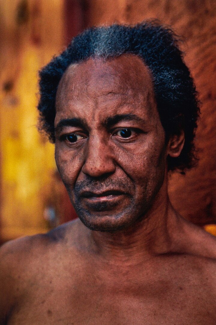 The impact of Bergman’s images rely heavily on the juxtaposition between forlorn facial expressions offset by rich, vibrant background colours. A shirtless man stares pensively at the entrance of an alleyway whose bricks are a blur of gold and burnt crimson, a woman stares impassively into the camera lens, her dress an intense royal purple, the interiors behind her a patchwork of marigold yellows and acid greens, while an elderly man in a bowling hat bites his lower lip, his eyes far far away, the background a tessellation of sap green, violet and deep cornflower blue. The effect is one of sensory overload. His images feel porous. Do we see the world through the eyes of the subject, and is it their sensibility which makes everything so intense and colourful, or does the subject actually affect their environment, colours, as it were, seeping out of them? It almost feels like we are seeing the auras of the subjects, the person photographed intrinsically linked to the colours which surround them. Thinking about the title, Fortune of the Spirit, these colours denote both the ‘fortune’ and ‘spirit’ of the sitters. They are their life experiences manifested into colour, hue and vibrancy belonging to poor people whose lives are rich in experience, feeling and emotion.